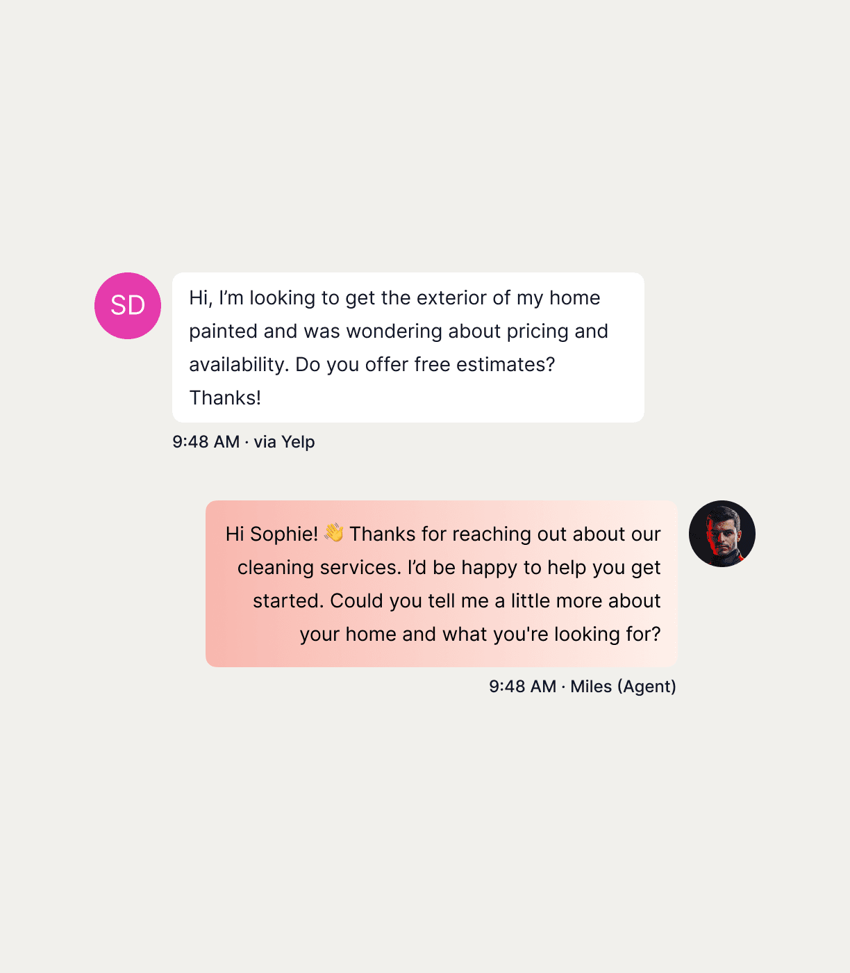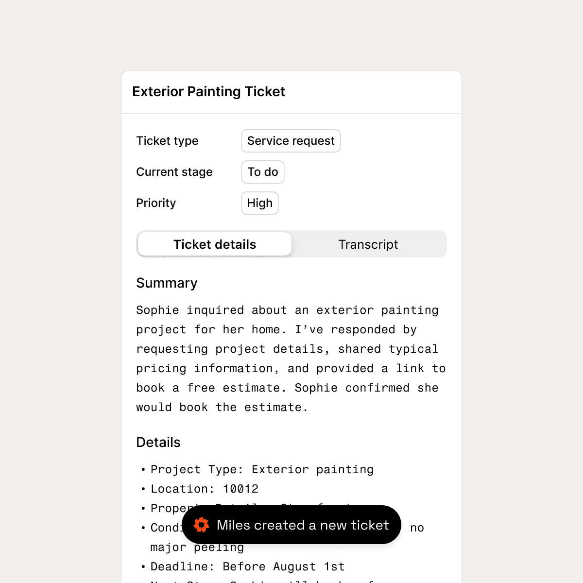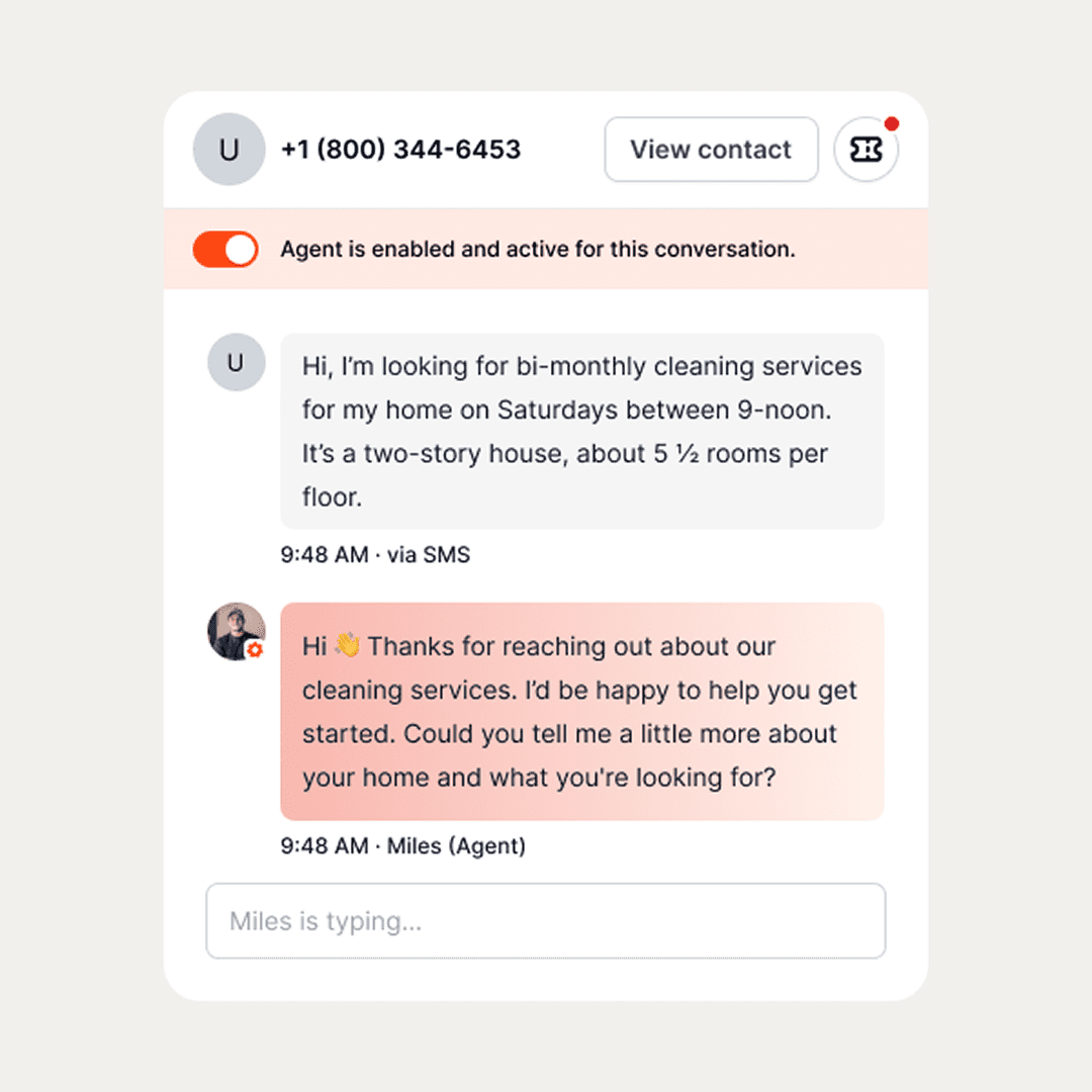 Enable Miles to manage inbound conversations automatically. Review summaries, identify qualified leads, and focus on prioritizing high-value opportunities.