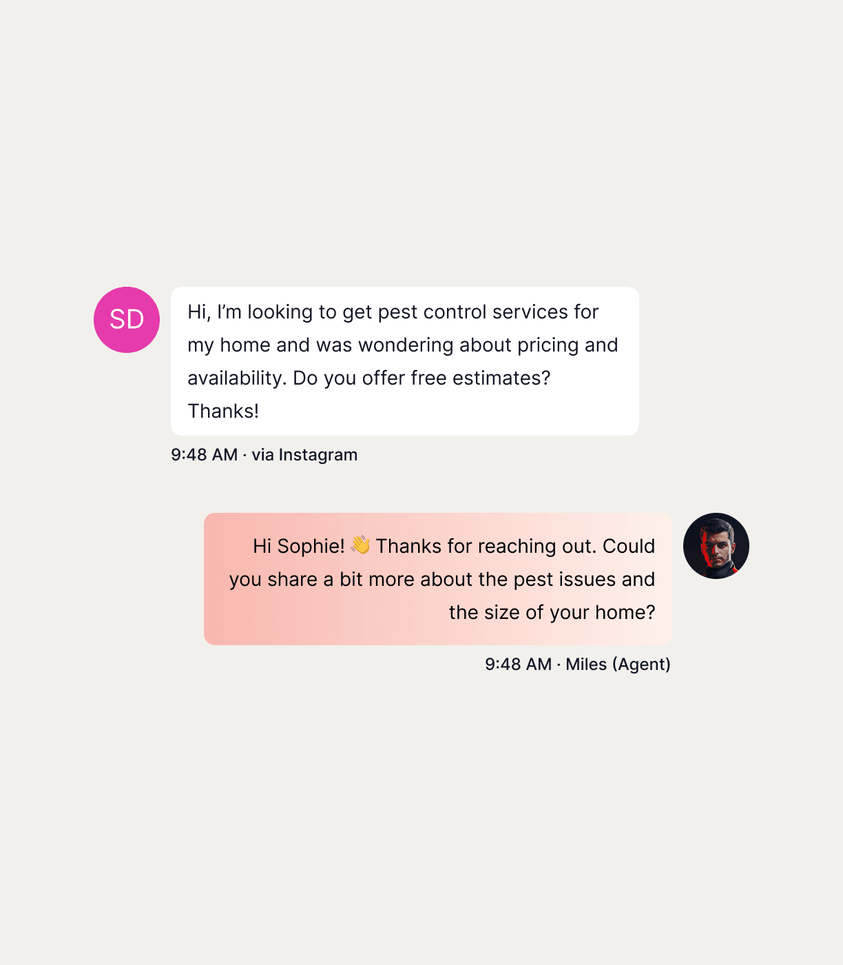 Connect Miles to your communication channels - SMS, Instagram, Facebook and email. Add live chat capabilities to your website and social media.